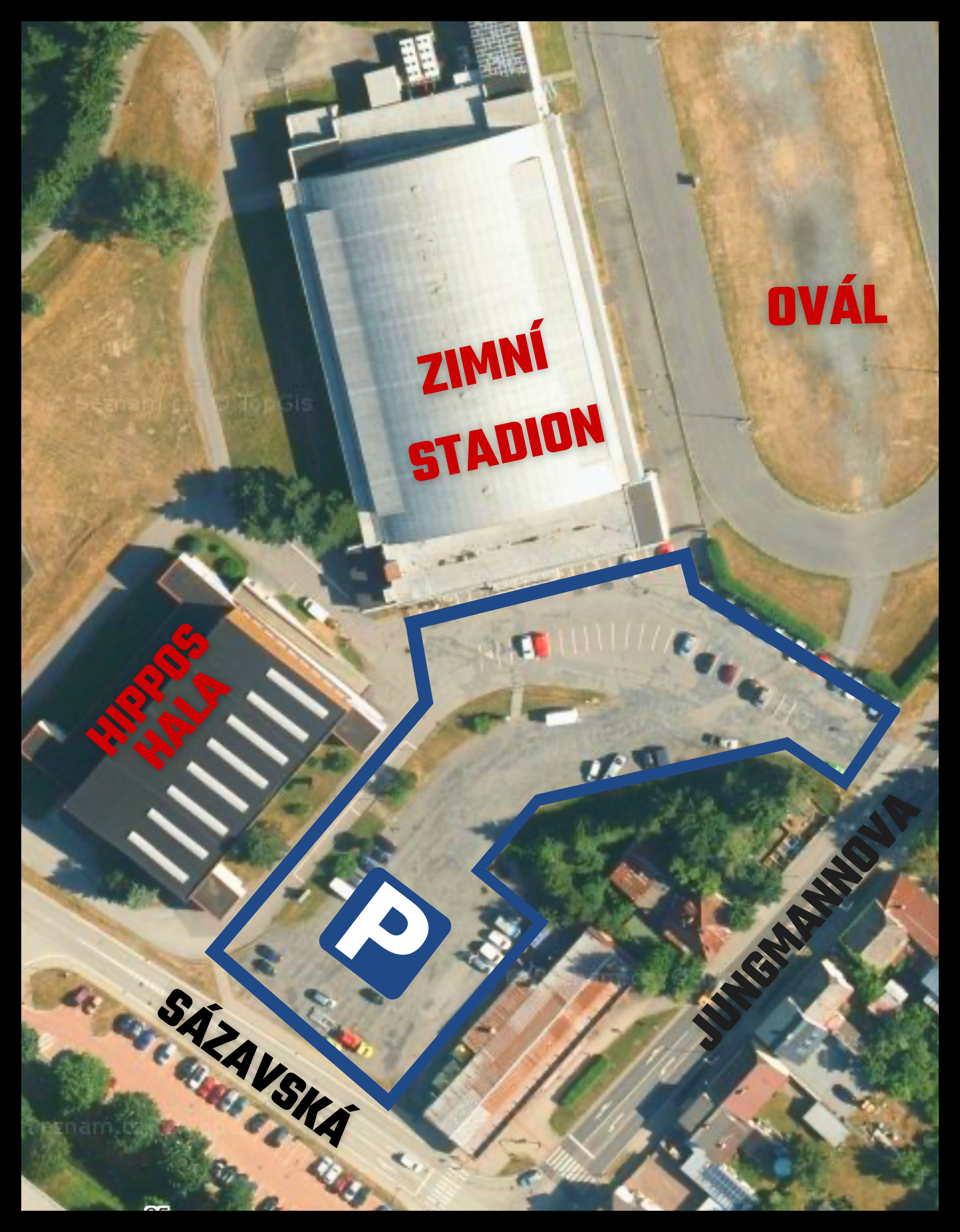 Doporučujeme využít parkoviště před zimním stadionem a sportovní halou.